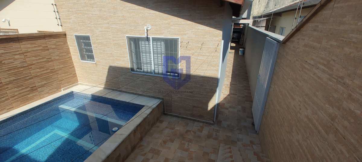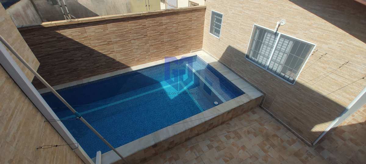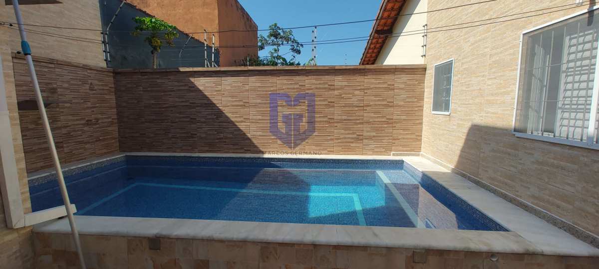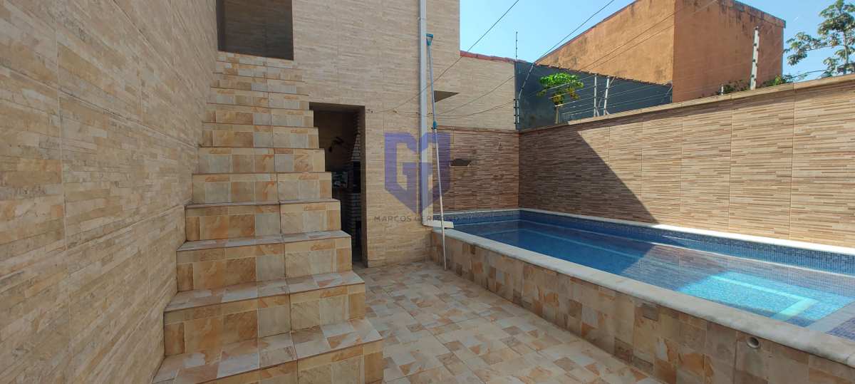 Casa com 03 dormitórios com suíte, sala de estar, cozinha, banheiro social, lavanderia, garagem para 02 carros cobertas, piscina com cascata e chuveirão de banho.