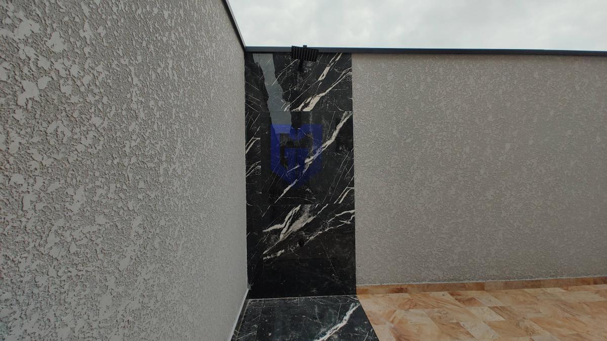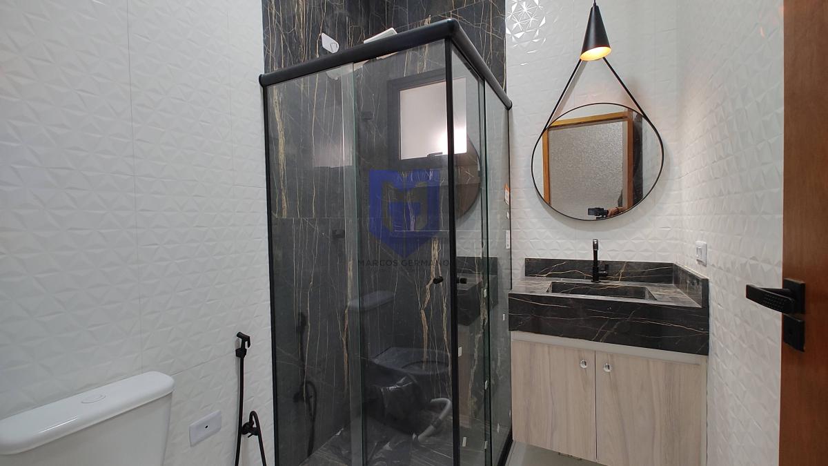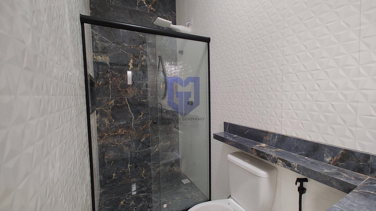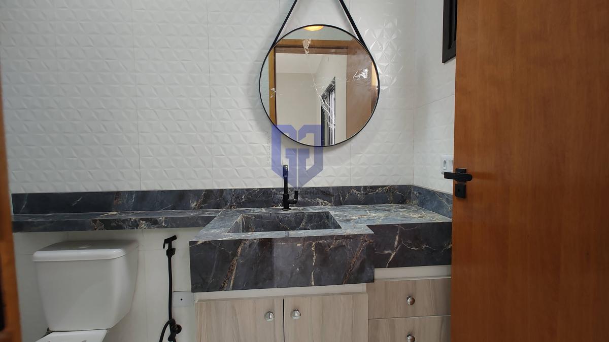 Acabamentos de 1º linha, pintura projetada e iluminação externa de led e todo piso em porcelanato, bancadas em mármore, armários na cozinha, armários nos banheiros e pias de porcelanato nos banheiros.