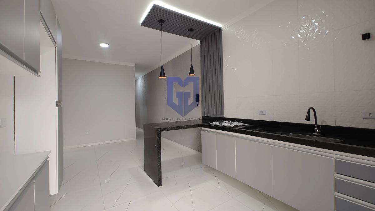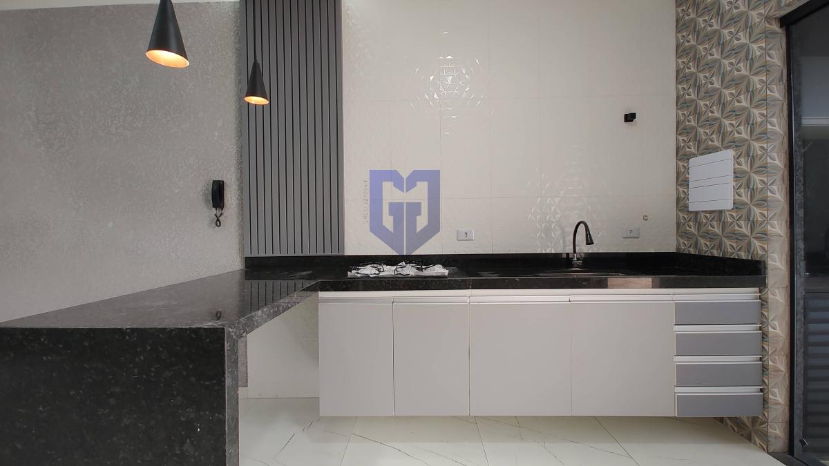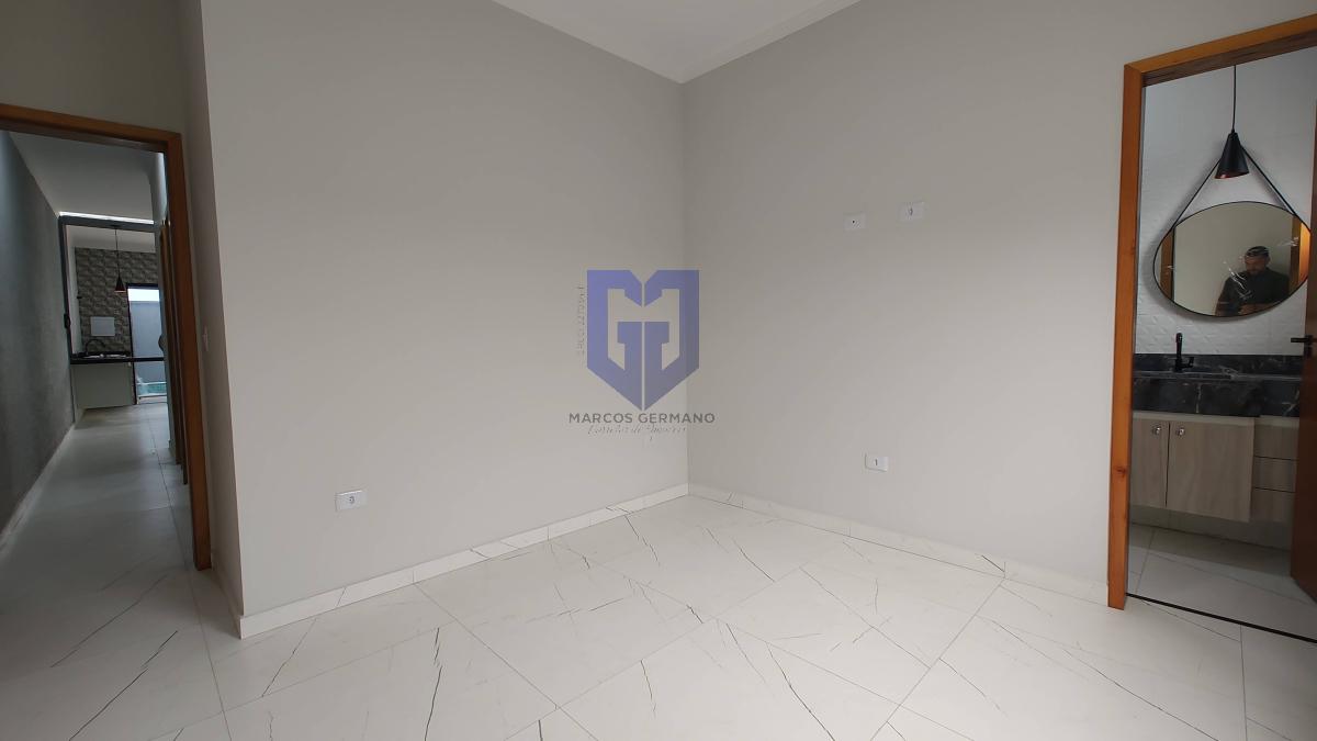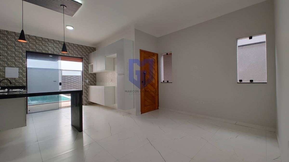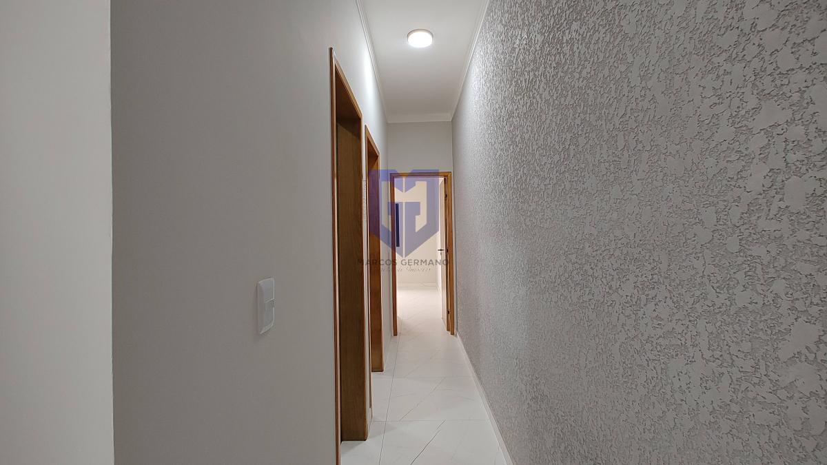 Acabamentos de 1º linha, pintura projetada e iluminação externa de led e todo piso em porcelanato, bancadas em mármore, armários na cozinha, armários nos banheiros e pias de porcelanato nos banheiros.