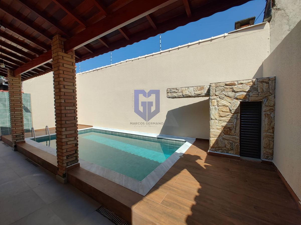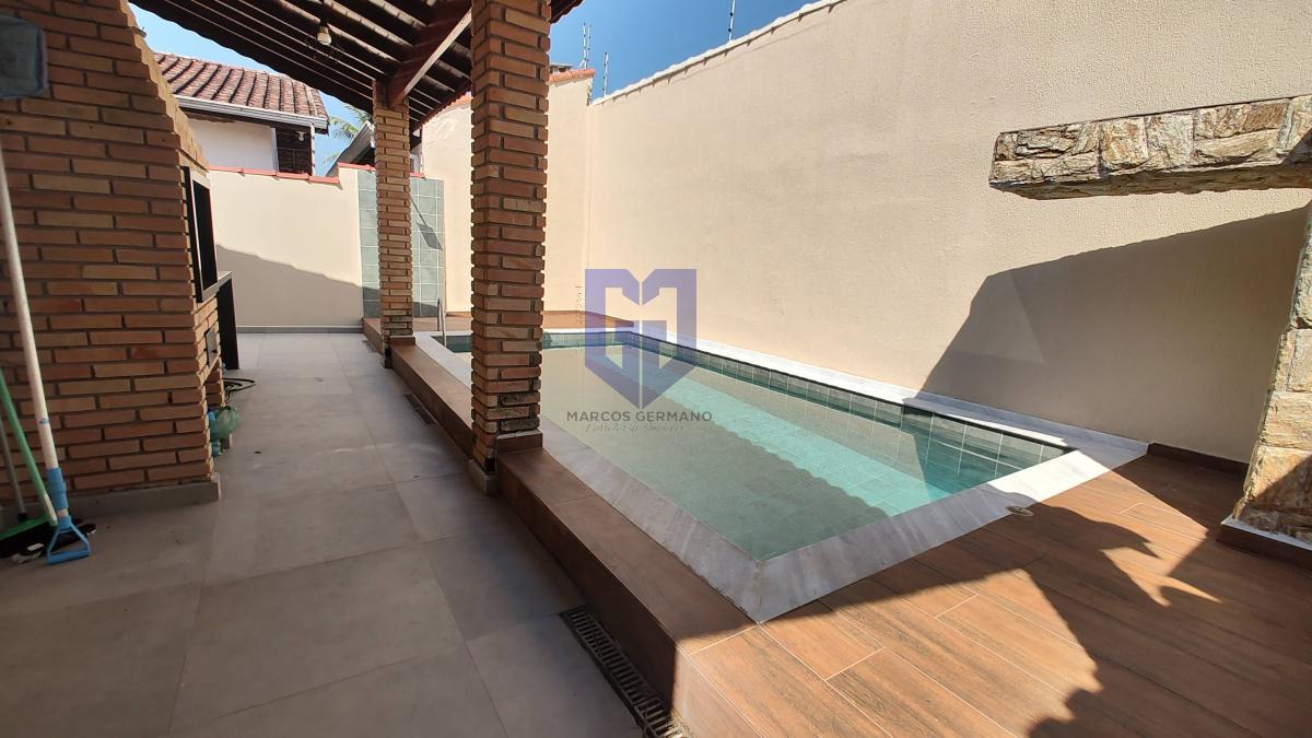 São 130 m² de puro charme! 3 quartos e uma suíte espaçosa. Na cozinha, uma bancada de granito em forma de U, piso em porcelnato, janelas em alumínio marrom com telas e venezianas, área de lazer completa contendo piscina e churrasqueira.