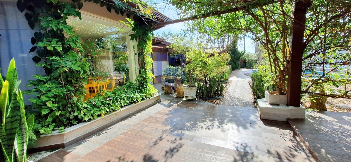 ** No exterior, uma cozinha completa com forno a lenha, área gourmet com churrasqueira, piscina, sauna, orquidário, lavanderia, depósito e um belíssimo quintal com diversas arvores frutíferas e flores, lindo paisagismo;
