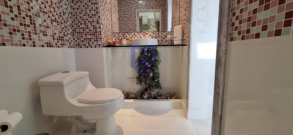 * Sala de jantar com um lindíssimo lustre de cristal e ar condicionado;