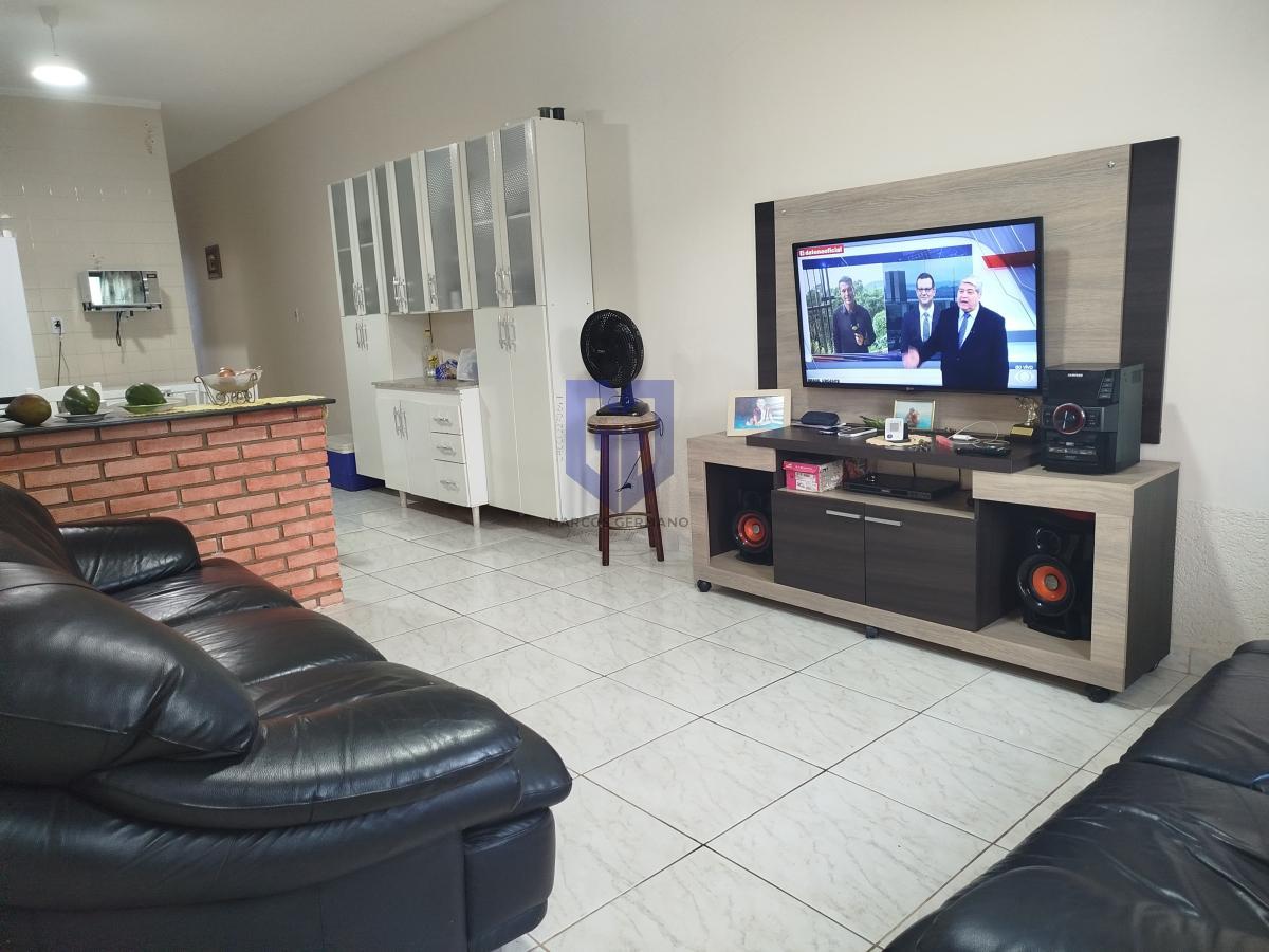 O imóvel tem 2 quartos, sendo 1 suíte, possui 2 banheiros, 1 sala e 3 vagas de garagem.